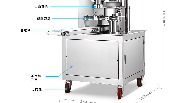 ◆ 結(jié)構(gòu)合理,成型、進(jìn)餡、進(jìn)面與控制面板均由獨立電機(jī)帶動不易發(fā)生連帶故障,且維修及拆裝清洗方便。
