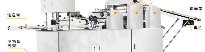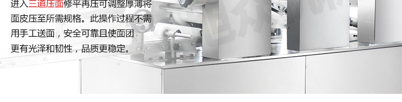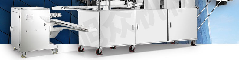 ◆ 生產速度快,效率高,生產流程流暢,各環(huán)節(jié)都輔以電控設備控制,不會出現(xiàn)堵面,破酥等現(xiàn)象;