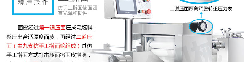 ◆ 產品的面帶經過多道壓面工藝,一步步提高筋度和密度,從而提高咀嚼口感;