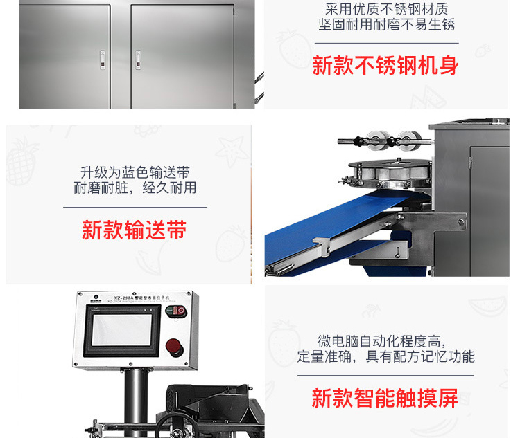 XZ-290A智能型卷面式包子機(jī),XZ-290A智能型卷面式包子機(jī)是一款以壓面方式成型面皮,卷面方式包餡,仿手工捏花的一款機(jī)型,它整合了原有的二道壓面、成型機(jī)、出餡機(jī)、切刀為一體,有操作方便、占地面積小等優(yōu)點(diǎn)。