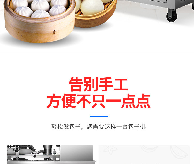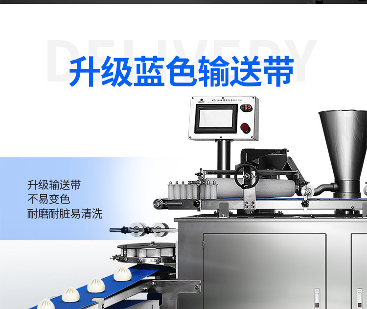 XZ-290A智能型卷面式包子機(jī)是一款以壓面方式成型面皮,卷面方式包餡,仿手工捏花的一款機(jī)型,它整合了原有的二道壓面、成型機(jī)、出餡機(jī)、切刀為一體,有操作方便、占地面積小等優(yōu)點(diǎn)。該機(jī)采用壓面成型面皮的方式,表面光潔,不傷面筋,不發(fā)熱,使產(chǎn)品口感滑順?biāo)?,保持傳統(tǒng)手工工藝的風(fēng)味,本機(jī)采用自動(dòng)控制系統(tǒng),品質(zhì)穩(wěn)定,壓面滾筒采用性能好的食品級(jí)材料UPE加工而成,且增大了滾簡(jiǎn)直徑使得在壓面過(guò)程中面皮的精度更高,產(chǎn)品重量精度更高,規(guī)格,長(zhǎng)度,大小,面皮的厚度皆可調(diào)整設(shè)定。