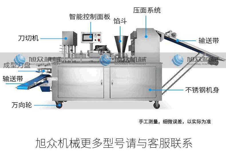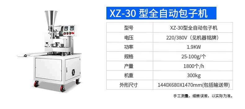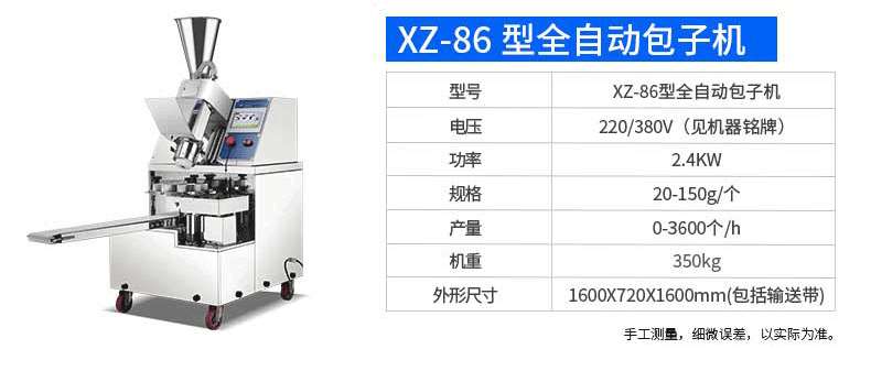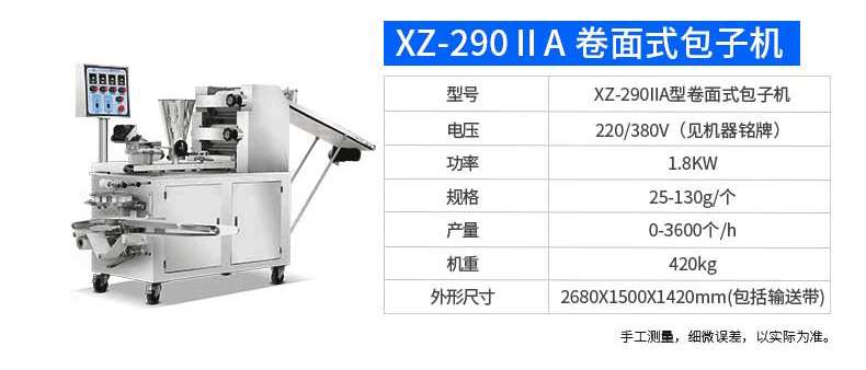 名稱XZ-290AS智能型卷面式包子機 電源220/380V 功率4.05kw 產(chǎn)量0-3600個/h 尺寸3280×1500×1420mm 重量480kg 規(guī)格 其他