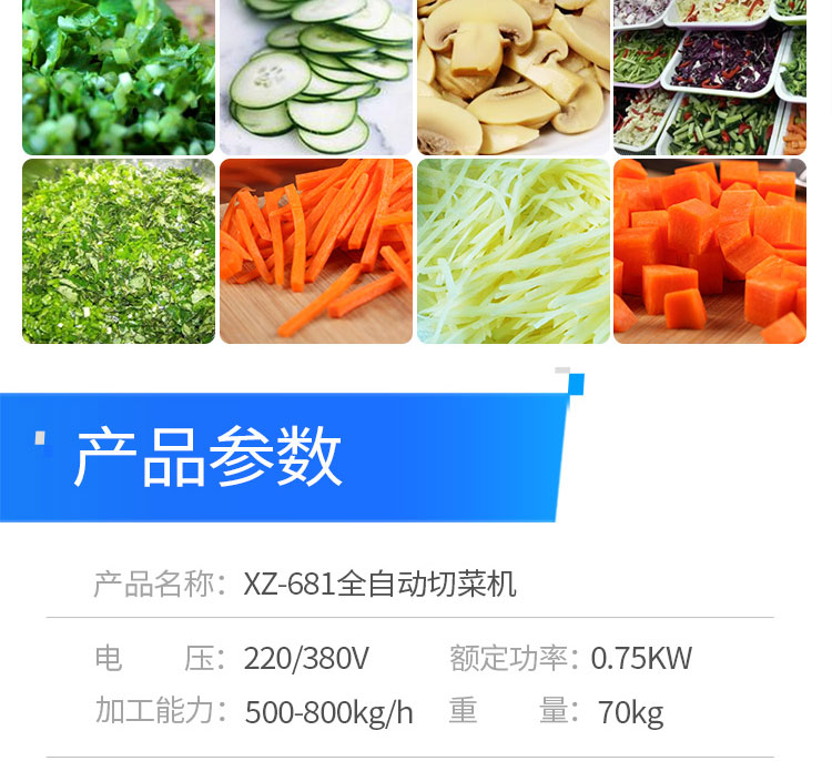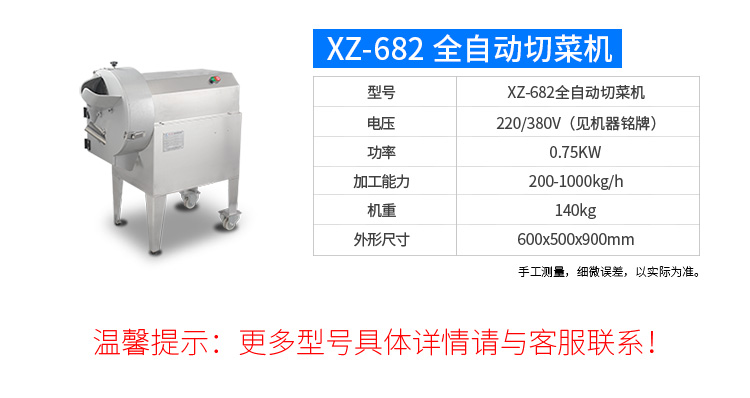 XZ-681多功能切菜機(jī),本設(shè)備可切葉菜可切片、絲、段等,葉菜類,切割尺寸: 1 - 60mm 可以調(diào)整,適用客戶群:食品廠,凈菜加工;學(xué)生營(yíng)養(yǎng)餐,餐飲連鎖,中央廚房,企業(yè)食堂等。