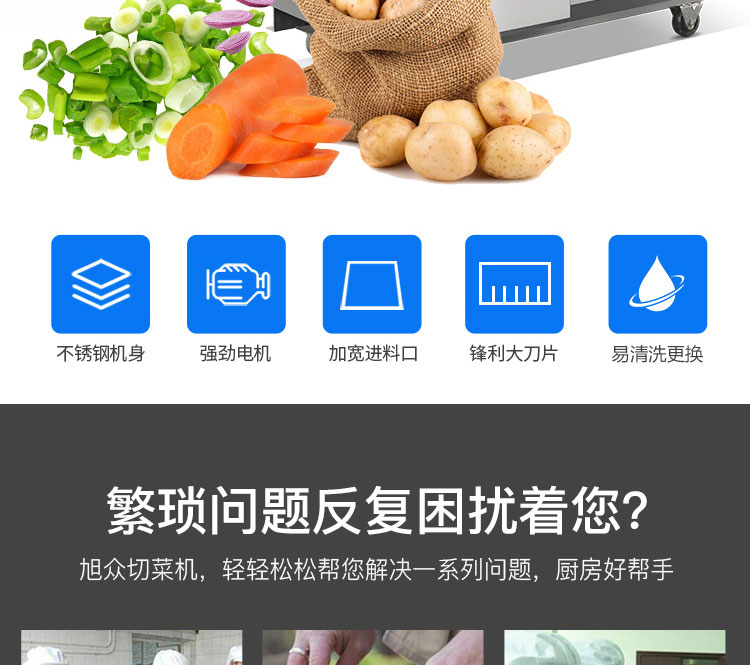作者:杭州旭眾發(fā)布時(shí)間:2017-04-15 11:42查看數(shù):您當(dāng)前的位置:首頁>>產(chǎn)品展示>>蔬菜加工系列>>多功能切菜機(jī)