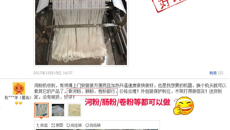 ◆ 用高效節(jié)能河粉機生產的河粉,完整保全了大米的營養(yǎng)成分,河粉品質佳,既營養(yǎng)豐富,又衛(wèi)生可口、美味無窮。