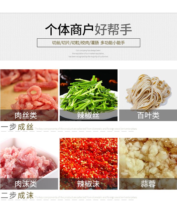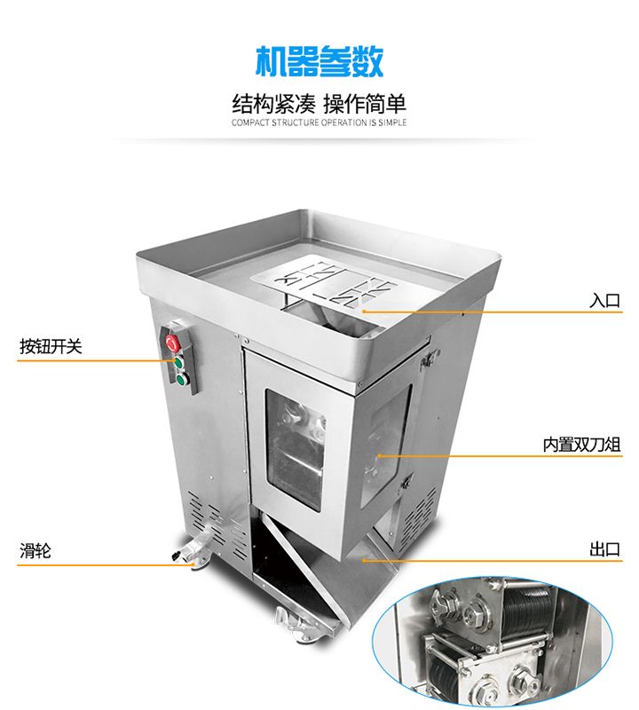 旭眾XZL一次成型切絲機(jī)是我廠精心研制出的新產(chǎn)品,該機(jī)時(shí)尚、簡(jiǎn)潔、清洗便捷、操作安全,配有風(fēng)冷馬達(dá),適合連續(xù)作業(yè);高質(zhì)量全不銹鋼機(jī)身。適應(yīng)于酒樓、超市、工廠、學(xué)校、賓館、食堂等各種肉類加工企業(yè)和個(gè)體用戶使用。?