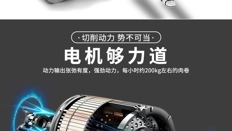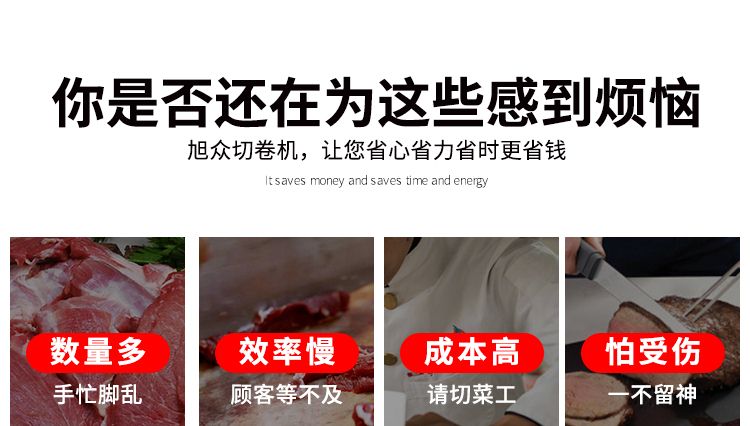 4.自動(dòng)化程度高,肉片切制,厚度調(diào)節(jié)。肉卷輸送,自動(dòng)停機(jī)。均可一鍵完成,省工省時(shí)