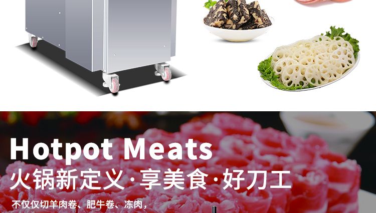 2.可同時(shí)切制2卷(4卷)肉料或2卷(4卷)肥牛,適合大中小型肉片加工企業(yè)使用
