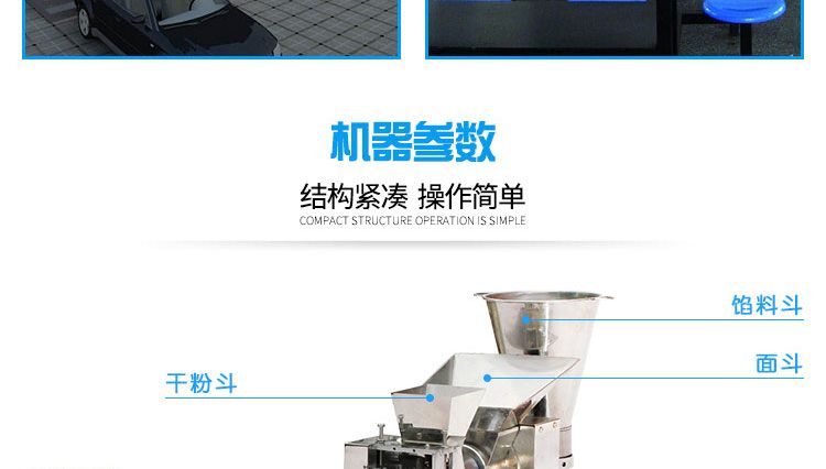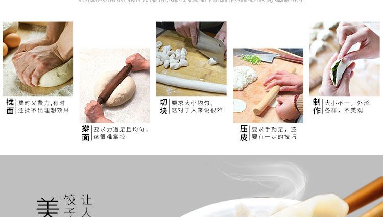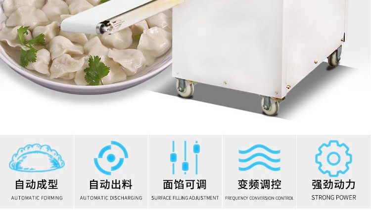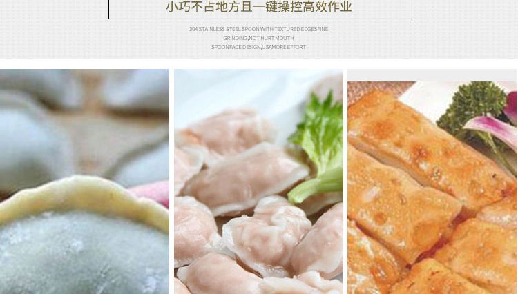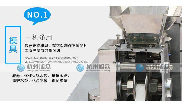 更換機頭可做春卷、餛飩、火鍋水餃、珍珠水餃、咖喱餃子、花邊餃子、鍋貼餃子