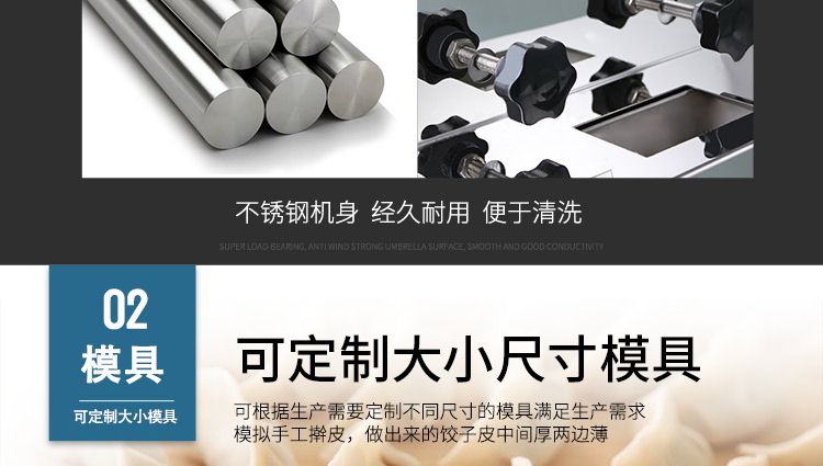 本機(jī)具有高效節(jié)能、安全衛(wèi)生、無(wú)邊角廢料、大小厚薄可定制等優(yōu)點(diǎn),使所生產(chǎn)餃子皮在外觀、口感、重量達(dá)到空間統(tǒng)一,從而轉(zhuǎn)變了當(dāng)今生產(chǎn)效率低、員工揮霍、二次污染、中部缺口等現(xiàn)狀,該仿手工餃子皮機(jī)除具有以上優(yōu)點(diǎn)外,還可依據(jù)生產(chǎn)必要轉(zhuǎn)變出皮速度等優(yōu)點(diǎn)。
