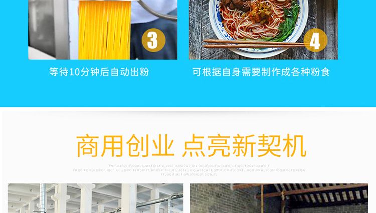 一步成型米粉機,一機多用:米粉機廣泛適用于所有含淀粉類糧食作物。大米、玉米、蕎麥、紅薯、土豆、綠豆、豌豆等都可以生產(chǎn),它不僅能生產(chǎn)米粉、米粉、朝鮮冷面、牛筋面、年糕、玉米面條、各種雜糧粉絲、各種面條、雜糧面條、彩色面條等多種面食品