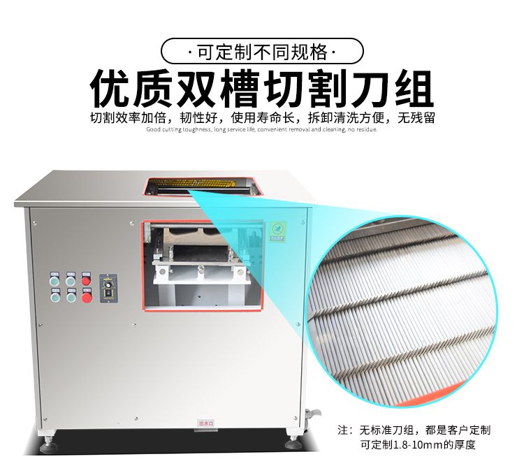 本機(jī)外形美觀、操作簡單、效率高、耗電小、清潔保養(yǎng)容易、安全衛(wèi)生、切肉效果好等優(yōu)點(diǎn),切鮮魚機(jī)器其造型美觀、結(jié)構(gòu)緊湊、堅(jiān)固耐用,切魚片機(jī)器價(jià)格實(shí)惠是賓館、酒家、食堂、肉類加工場等單位所不可缺少的肉類加工機(jī)械
