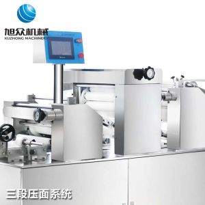 旭眾牌XZ-15C三道搟面酥餅機是我公司仿手工制作面食產(chǎn)品的機型,占地面積小,重量輕,它吸收國內(nèi)傳統(tǒng)手工制作技術(shù),即運用搟面杖壓面和打擊面團,以保證高面筋性和面帶的密度,并綜合考慮面食的口感而研發(fā)。