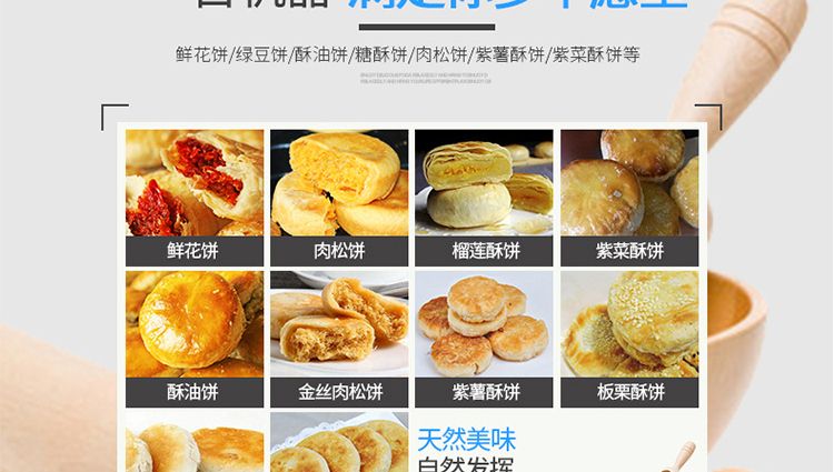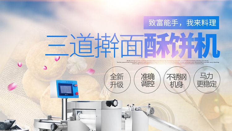 XZ-15C三道搟面酥餅機,仿手工制作面食產(chǎn)品的機型,占地面積小,重量輕,運用搟面杖壓面和打擊面團,以保證高面筋性和面帶的密度,并綜合考慮面食的口感而研發(fā)??缮a(chǎn)東北糖酥餅,東北大香酥餅,蘇式月餅,芝麻餅,鮮花餅,老婆餅。購機免費提供工藝技術(shù)