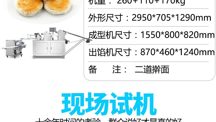 名稱XZ-15B二道搟面酥餅機 電源220/380V(見機器名牌) 功率2.5kw 產(chǎn)量0-5000個/小時 尺寸2950×705×1290mm 重量260+110+170kg 規(guī)格10-150克/個 其他