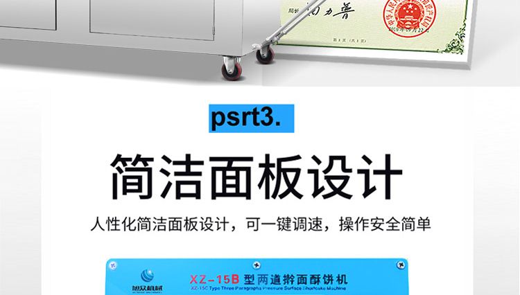 旭眾牌XZ-15B二道搟面酥餅機是我公司仿手工制作面食產(chǎn)品的機型,占地面積小,重量輕,它吸收國內(nèi)傳統(tǒng)手工制作技術(shù),即運用搟面杖壓面和打擊面團,以保證高面筋性和面帶的密度,并綜合考慮面食的口感而研發(fā)。
