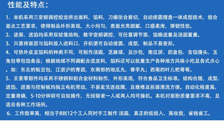 ◆送面、送餡均采用四絞龍結(jié)構(gòu),數(shù)字變頻調(diào)控,可任意調(diào)節(jié)面餡輸送量及湯圓重量;