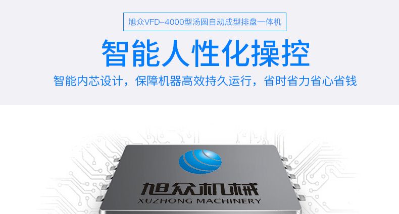 旭眾牌VFD-4000型湯圓自動成型排盤一體機是一款功能齊全、適用性廣的機器,可依外皮及餡料的各類不同,制作湯圓、豆沙包、南瓜餅、奶黃包、含餡饅頭、玉兔包等包餡食品。