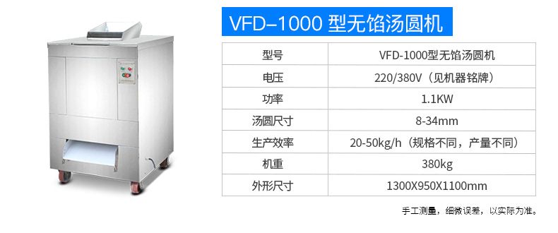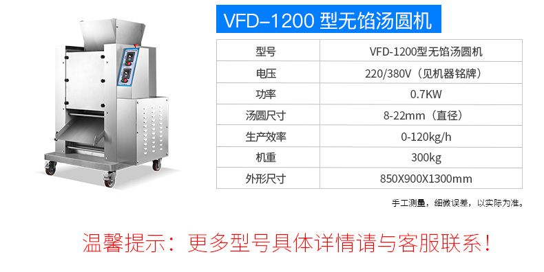 名稱VFD-4000型湯圓自動成型排盤一體機 電源220/380V(見機器名牌) 功率2.2kw 產(chǎn)量0-4000個/小時 尺寸外形尺寸1340*1120*1520mm 重量280kg 規(guī)格8-120克/個 其他
