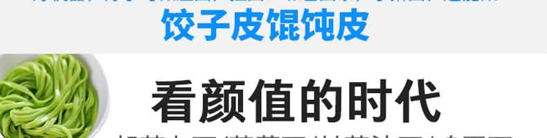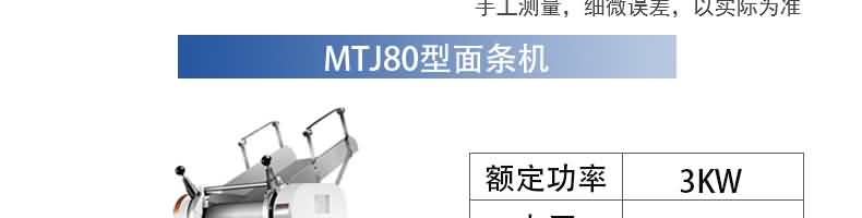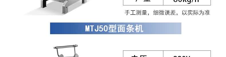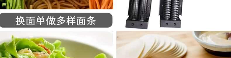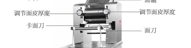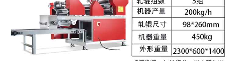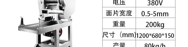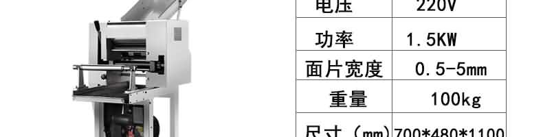 名稱(chēng)RQJ-60型豪華壓面面條機(jī) 電源220/380V 功率1.5/2.2kw 產(chǎn)量60-80kg/h 尺寸1000*510*1180mm 重量111kg 規(guī)格厚度0.6-20mm 其他