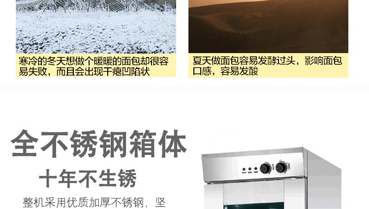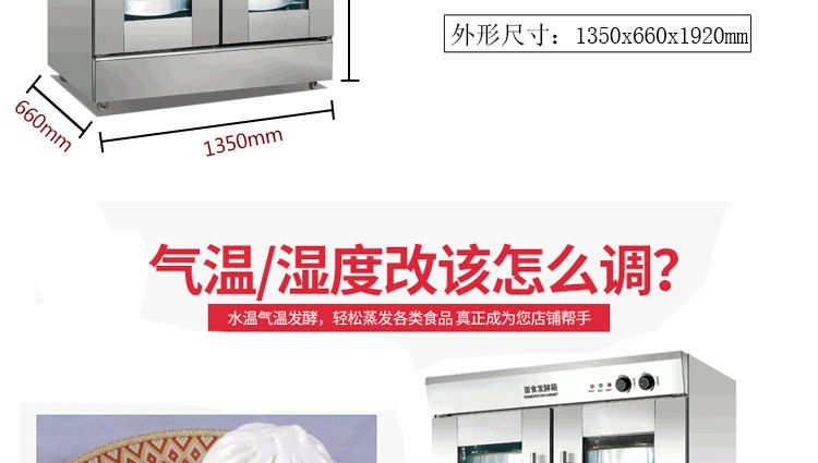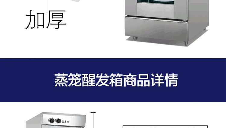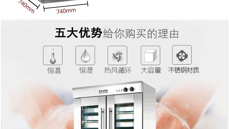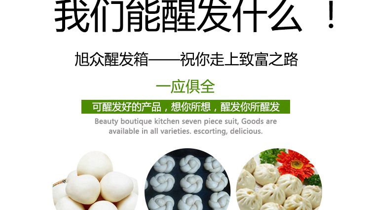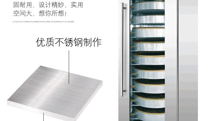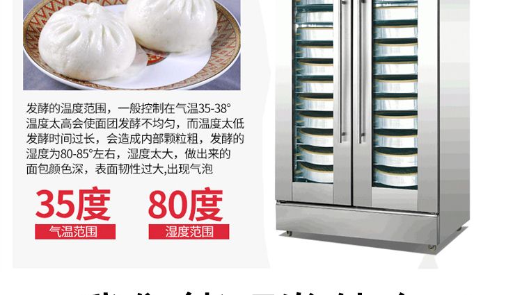 旭眾蒸籠醒發(fā)箱采用全不銹鋼制成,利用電熱管通過自動(dòng)調(diào)節(jié)使箱內(nèi)熱水加熱,產(chǎn)生大量水蒸氣。使箱內(nèi)濕度達(dá)80-85%,可將溫度自動(dòng)控制在35-40℃之間,形成適合發(fā)酵環(huán)境,并增設(shè)加溫干燒管及發(fā)熱片,保持箱內(nèi)溫度以及把水珠加熱霧化,使發(fā)酵過程達(dá)到很好效果,是糕點(diǎn)生產(chǎn)配套的理想設(shè)備。