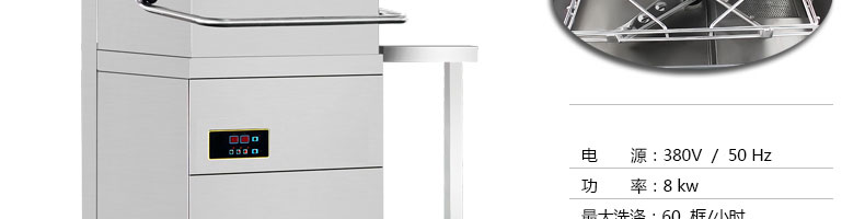 旭眾牌XZ-60揭蓋式洗碗機(jī)板材采用標(biāo)1.2mm厚不銹鋼板,主骨架均為國標(biāo)1.5不銹鋼管,底座鋼板為6mm,進(jìn)出口傳動軸均為304#不銹鋼材質(zhì);水泵為意大利進(jìn)口水泵(國標(biāo)15米揚程)不銹鋼食品泵,電器采用知名品牌正泰電器,篩網(wǎng)為激光沖孔。揭蓋式洗碗機(jī)主要針對小碗、小碟、杯子類餐具。