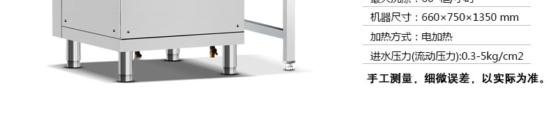 名稱XZ-60揭蓋式洗碗機(jī) 電源380V 功率11kw 產(chǎn)量 尺寸主機(jī)規(guī)格700*800*1500mm 重量 規(guī)格 其他最大洗滌高度400mm,洗滌量1000pcs/h,板材:全部304板材,1.2mm厚,標(biāo)配3個籃子