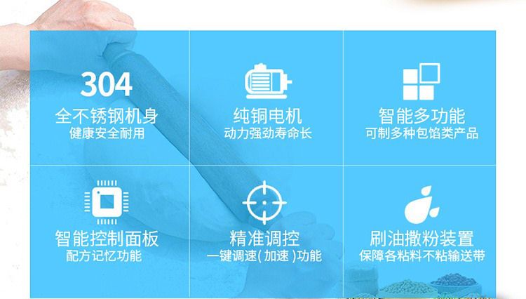 SZ-65型多功能自動(dòng)包餡機(jī)采用臥式輸面、立式輸餡系統(tǒng),運(yùn)行流暢,效率高??缮a(chǎn)豆沙、蓮蓉、五仁餡等較干餡料的包餡類產(chǎn)品,制出的產(chǎn)品餡、皮比例可任意調(diào)整,制品大小統(tǒng)一,外形美觀。