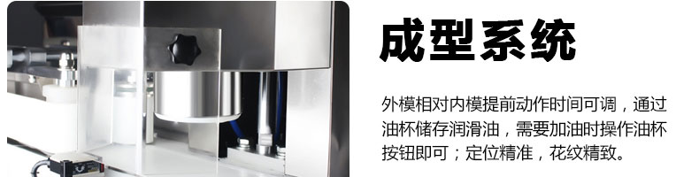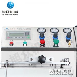 旭眾牌SZ-64型月餅自動成型機是一款多功能的設(shè)備,其具備的功能有:月餅計數(shù)、數(shù)字清零、月餅位置定位、月餅花紋深度調(diào)節(jié)、外模對內(nèi)模提前動作時間調(diào)節(jié)以及成型時輸送帶延時時間調(diào)節(jié)。