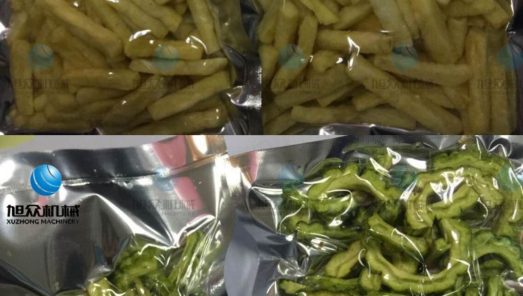 ●保色作用:采用真空油炸,油炸溫度大大降低,而且油炸鍋內(nèi)的氧氣濃度也大幅度降低。油炸食品不易褪色、變色、褐變,可以保持原料本身的顏色。如獼猴桃極易受熱褐變,若采用真空油炸,可以保持其綠色。